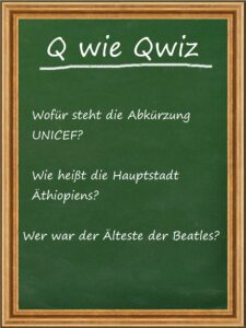 Ihr wolltet schon immer mal euren inneren Klugschei**er rauslassen? Ihr habt geballtes Halbwissen? Dann kommt vorbei und testet euer Wissen bei den von den Qwizmastern gestellten Fragen. Gestellt werden Fragen aus allen Kategorien, rund um den Globus, quer durch alle Zeitalter, da ist für jeden was dabei. Vorrangig geht es bei allen unseren Qwizzes Spaß an der Freude zu haben und ganz egal was am Ende auf dem Zettel steht, Dümmer als man gekommen ist, geht man auf keinen Fall nach Hause!